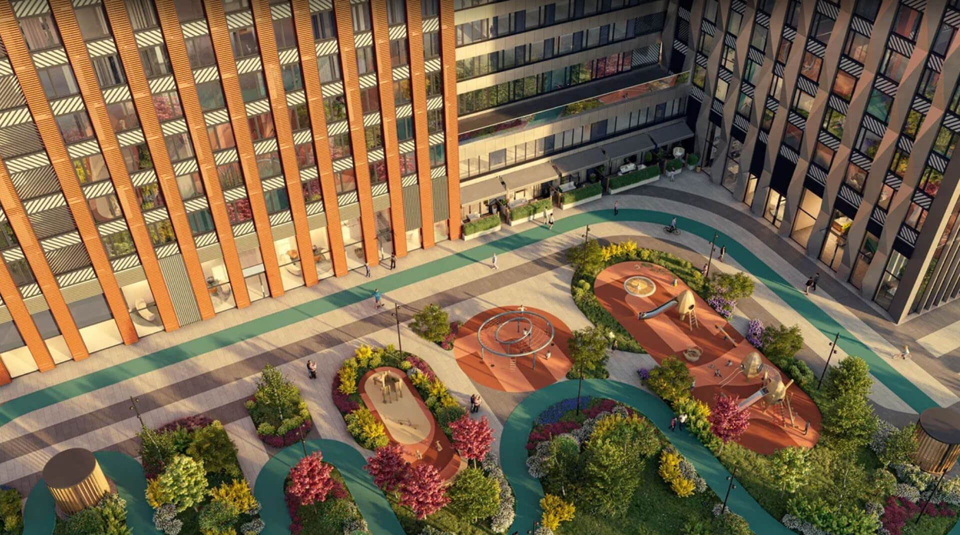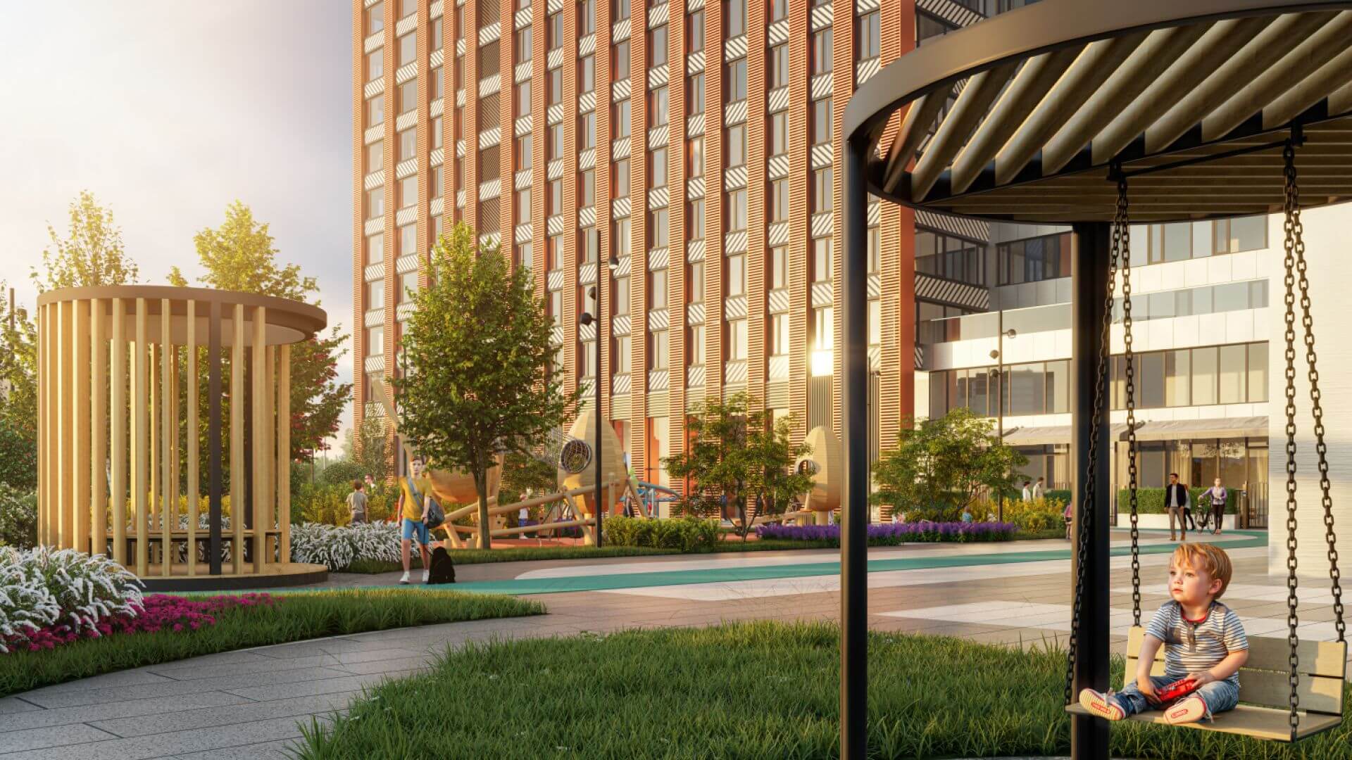 Ландшафтный дизайн разработан ведущими архитекторами, благодаря чему территория комплекса утопает в зелени. Здесь расположены современные детские и спортивные площадки, прогулочные аллеи и зоны для отдыха на свежем воздухе. Вечером освещение создает уютную атмосферу, а специальные зоны с удобной мебелью позволяют приятно проводить время на улице в любое время года.